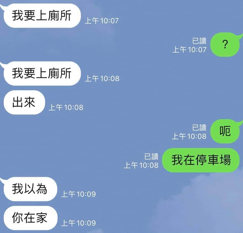 上周日早上趁着她还没起床,先去把上周去海边玩,留在车内的细沙清一清,才刚停好车准备回家讯息就来了