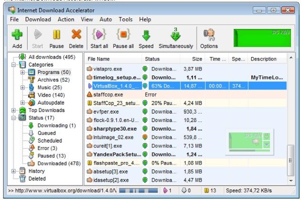 互联网下载加速器的外观和感觉很像 IDM 以前的样子。这是一个非常简单的界面,有很多选项。它与您的浏览器集成以提供常用的下载功能,并使用文件拆分技术来加快下载速度。暂停和恢复的功能也非常有用,下载完成后安排计算机关机的功能也非常有用。