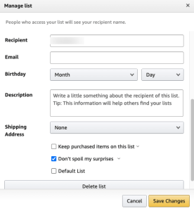 但是,如果您希望它保密,则不会通知收件人。好消息是,亚马逊会告诉您,您希望收到礼物的人是否已经通过他或她的个人资料购买了该商品。这样,您就不会购买他们已有的东西,这是一个不错的选择。