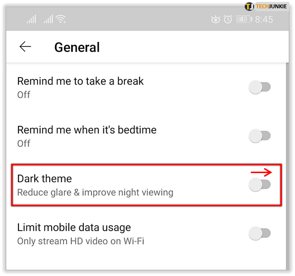 这应该会使您的 YouTube 应用变暗。如果你想再次回到浅色模式,你可以按照同样的方法轻松反转。