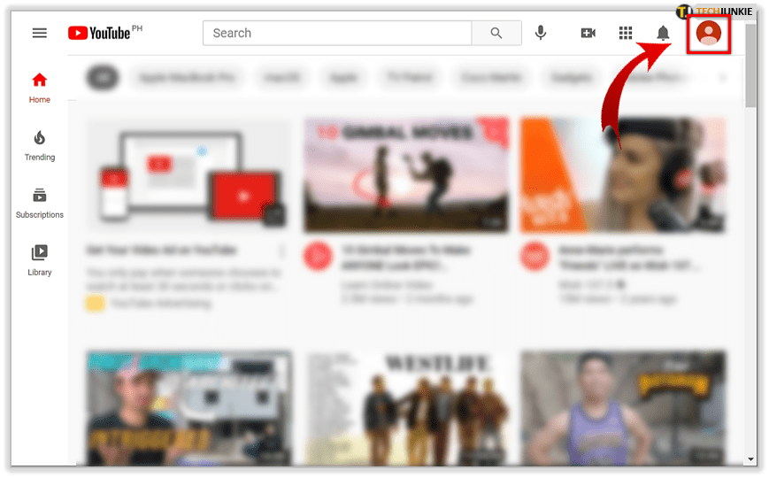 - 单击屏幕右上角的个人资料图片。如果您还没有登录 YouTube 帐户,则需要先登录。