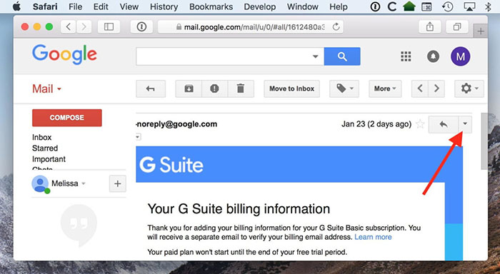配置在 Gmail 中阻止发件人,首先访问 mail.google.com 并使用您的电子邮件地址和密码登录。找到来自您要阻止的发件人的邮件,单击它以将其打开,然后查找电子邮件右上角附近的小箭头。
