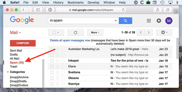 当您在 Gmail 中阻止发件人时,来自被阻止发件人的邮件将被直接发送到您的垃圾邮件文件夹(在那里它们将被自动30 天后删除),因此如果您不想再看到该发件人的资料,您将永远不必再看到。这也适用于一直试图与您联系的前朋友或家人-如果您不想看到联系人的任何信息,只需将他或她放逐到垃圾邮件中即可!