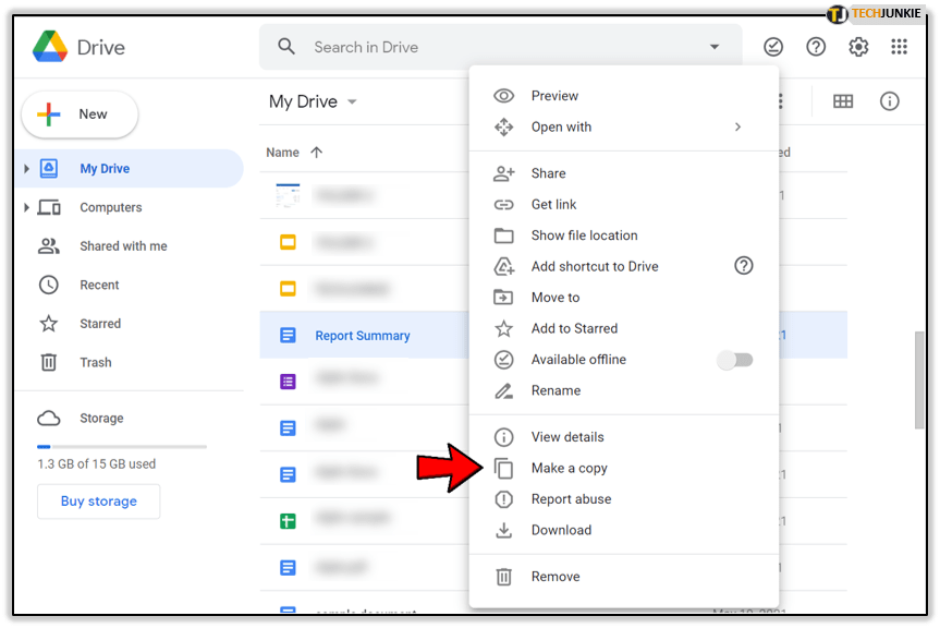 - 单击“制作副本”。这将创建一个名为“[文件名]的副本”的相同文件的副本。
