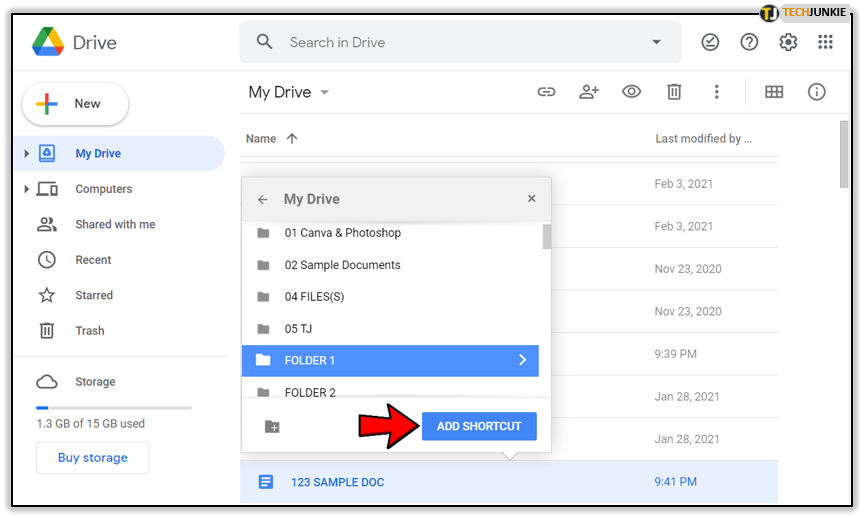 现在您有两份文件副本-一份在您的 Google 云端硬盘菜单中,一份在目标文件夹中。您可以对要将文件移动到的每个文件夹重复此过程。这样,您将在所有选定的文件夹中拥有相同文件的副本。