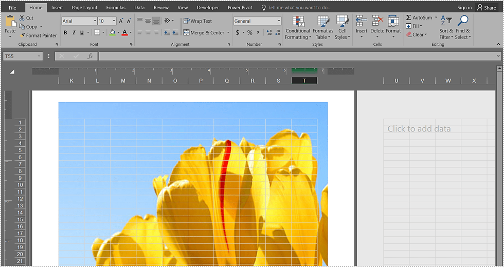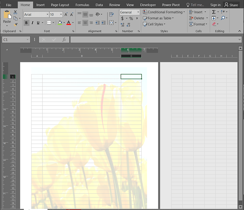 在本例中,我们使用了示例 Windows 10 图片。请注意,图片实际上成为此工作表中的背景。但是,如果您的图片很小,水印将不会覆盖整个页面。