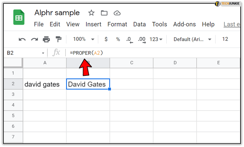 在函数栏中,只需输入 =PROPER 并写入单元格数字。您可以通过将“PROPER”替换为“LOWER”来反过来做。
