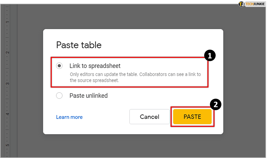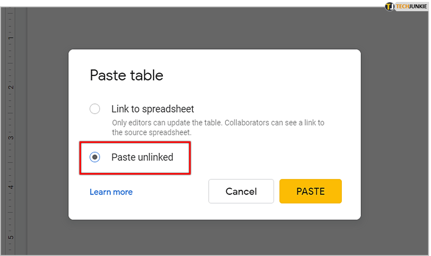 如果您选择粘贴未链接,过程可能会更快,但是您只需粘贴电子表格的当前内容。换句话说,该表不会是交互式的,您将无法更新它。因此,如果您打算更改电子表格中的某些详细信息,我们建议始终选择“链接到电子表格”选项。