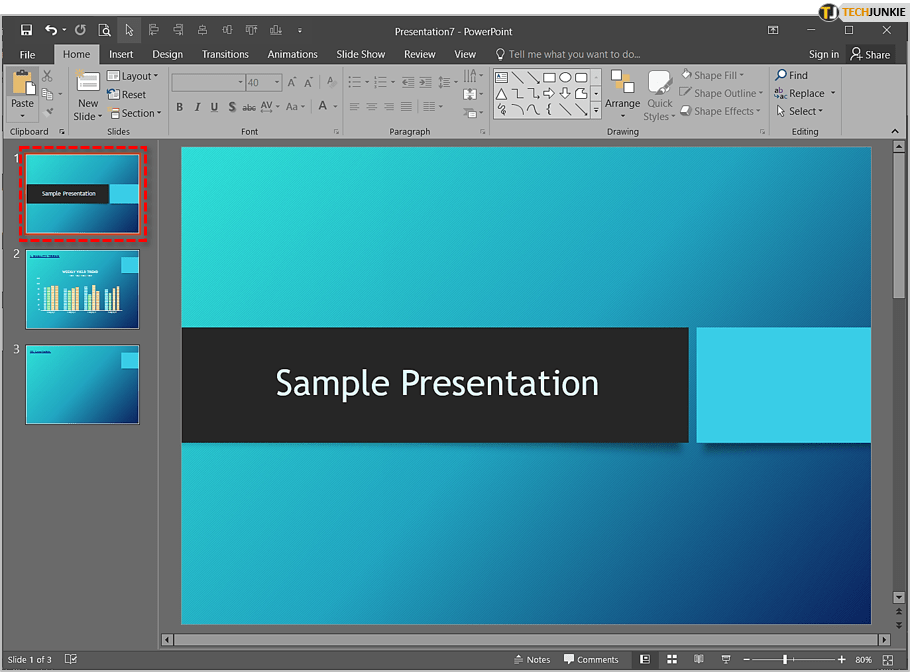 启动并运行 PowerPoint 并打开您的项目。现在选择要放置音乐文件的位置。如果您希望它从头开始播放,请选择第一张幻灯片。否则,请选择您想要的。您现在已准备好进行下一步。