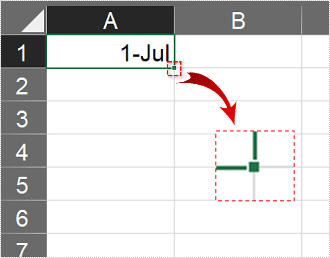 - 在单元格选择矩形的右下角,您会看到一个小方块。这是填充句柄。
