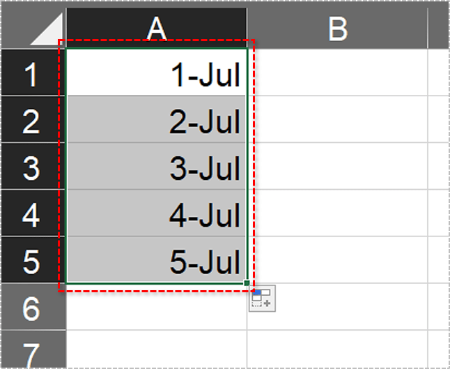 - 当你释放它时,你会看到选中的单元格现在包含连续的日期。