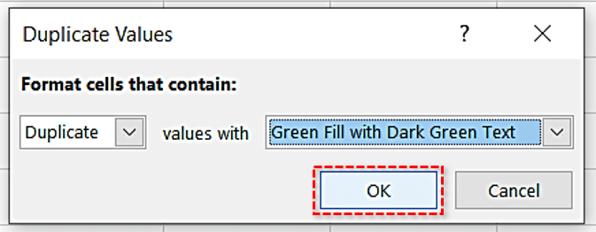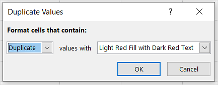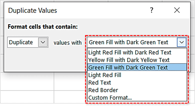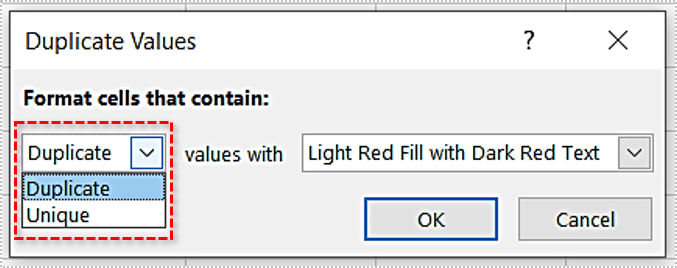 - 第一个下拉列表允许您选择要着色的单元格,重复或唯一