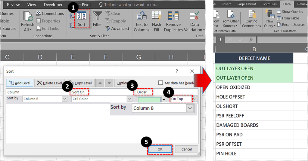 - 转到数据-> 排序和排序过滤器-> 排序。