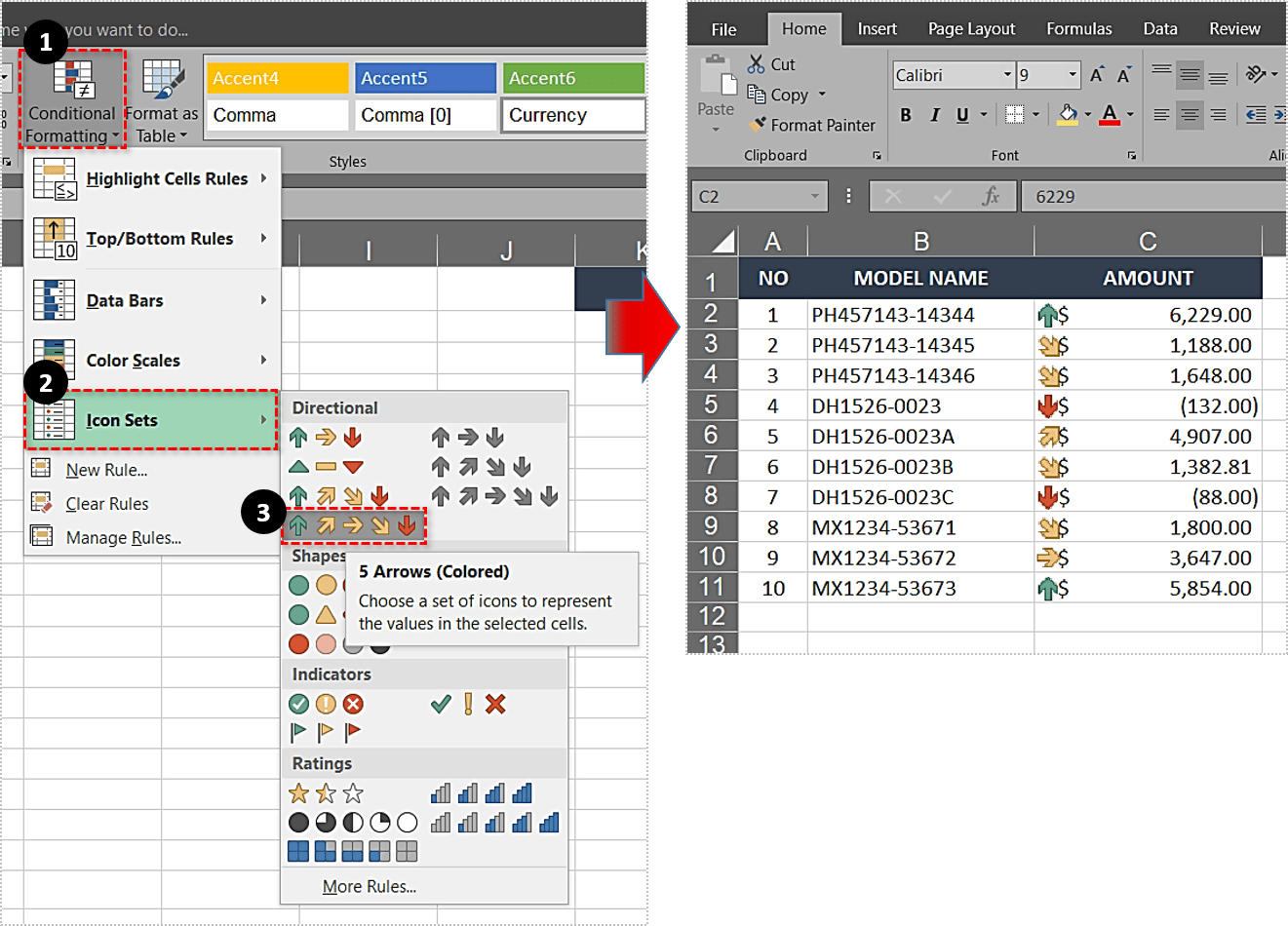 - 导航到条件格式-> 图标集。
