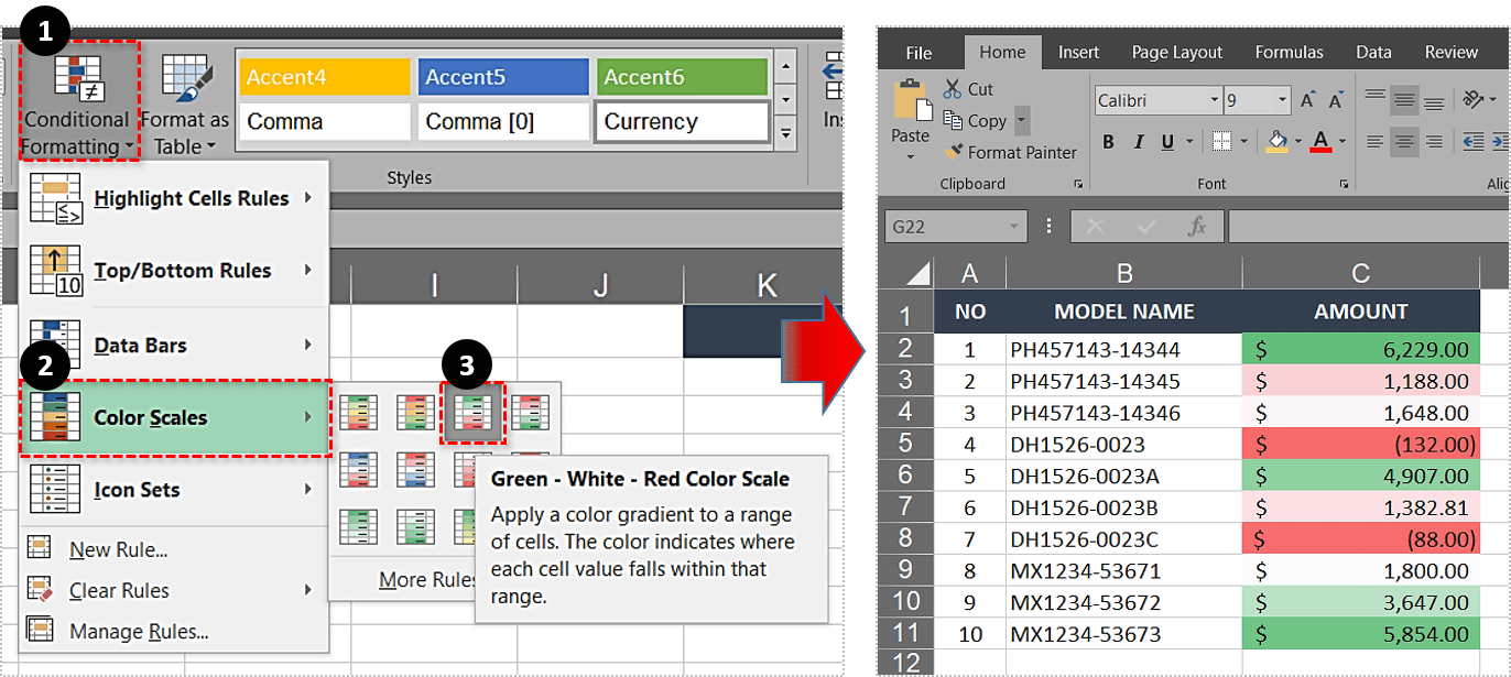 使用条件格式下的色阶 strong> 的工作方式与 图标集 的工作方式几乎相同,只是显示结果不同,并且具有更多渐变。