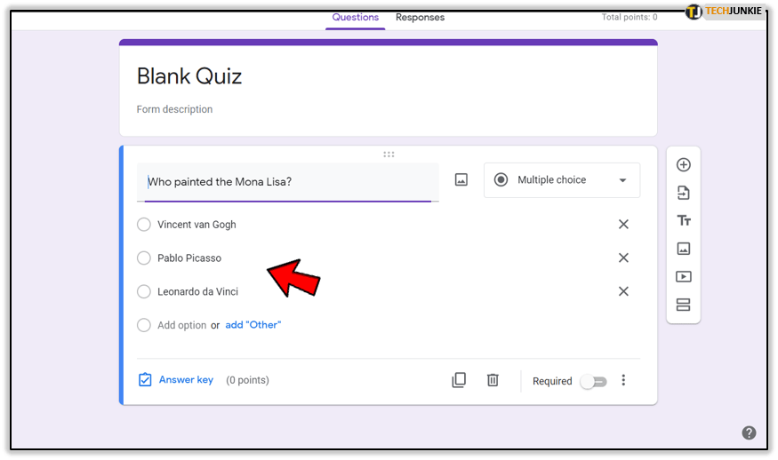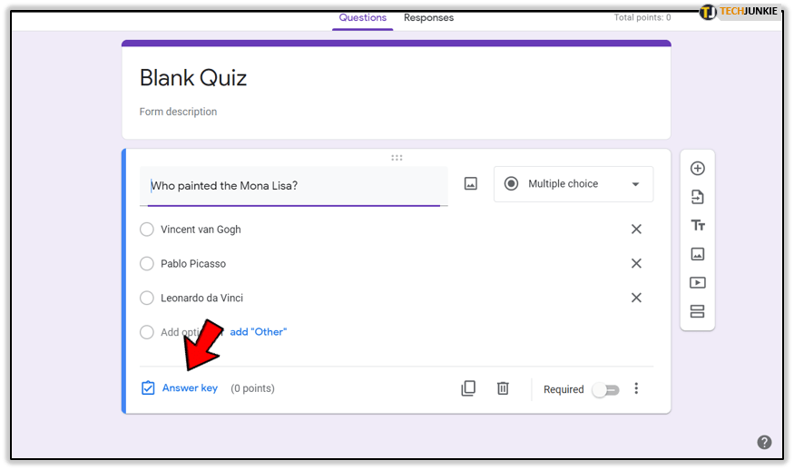 - 添加答案后,点击“答案键”,然后您可以标记出哪个答案是给定问题的正确答案。
