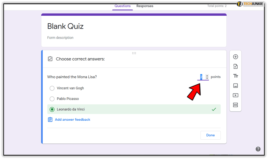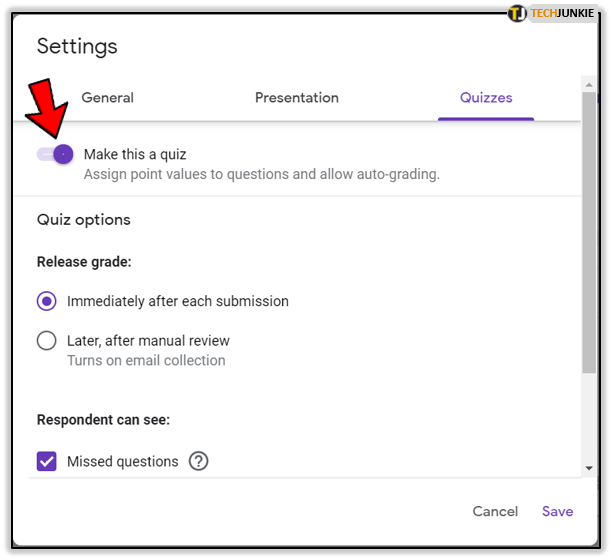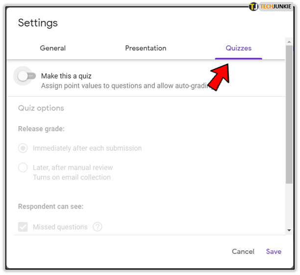 - 切换“Make this a quiz”选择器,就会出现一些新选项。