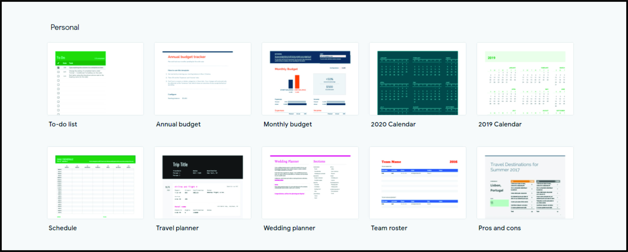 您可以为不同的任务创建一个模板,例如时间表、预算、损益表、销售、营养表,以及您想到的所有其他内容。以下是制作方法: