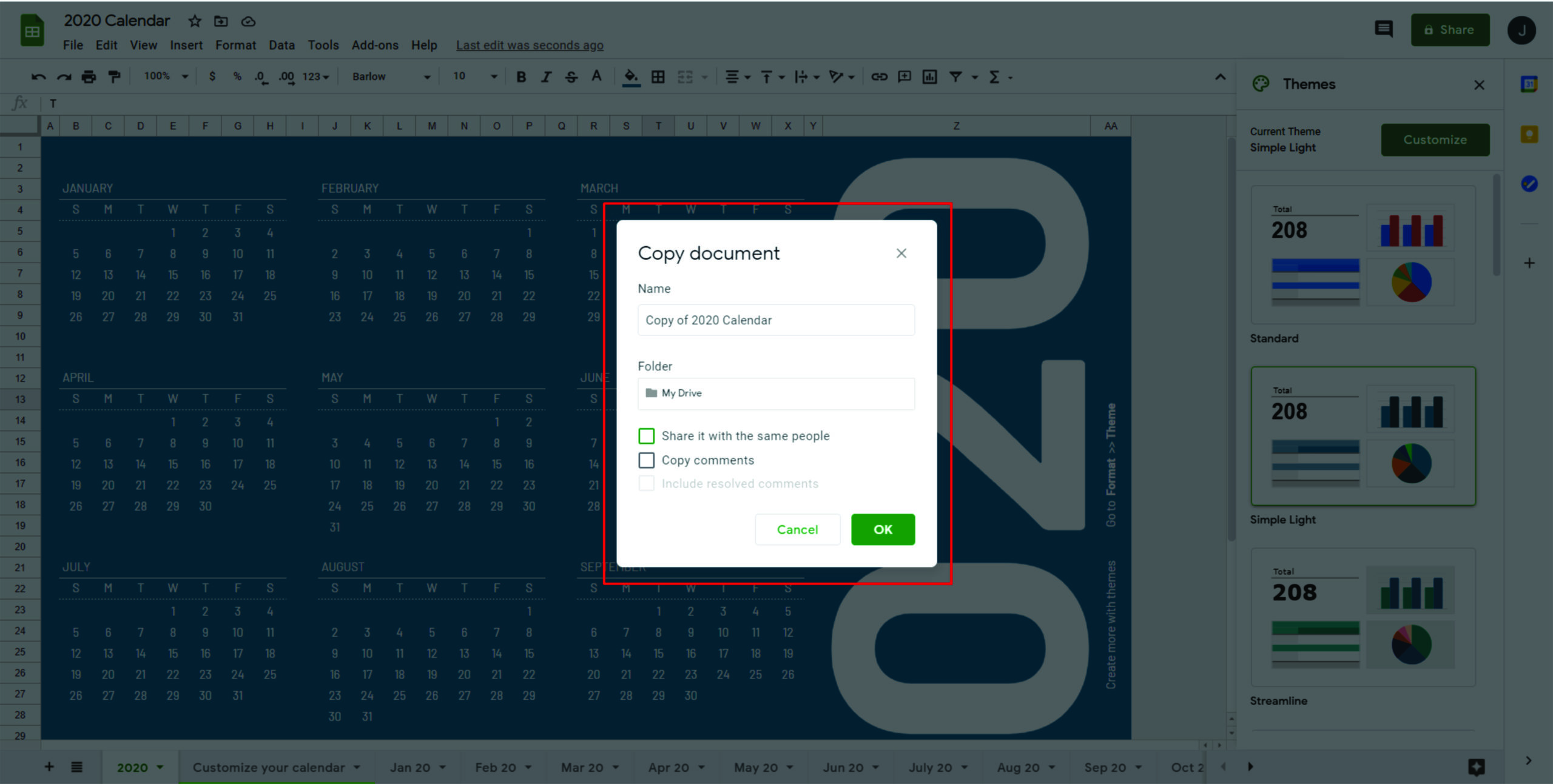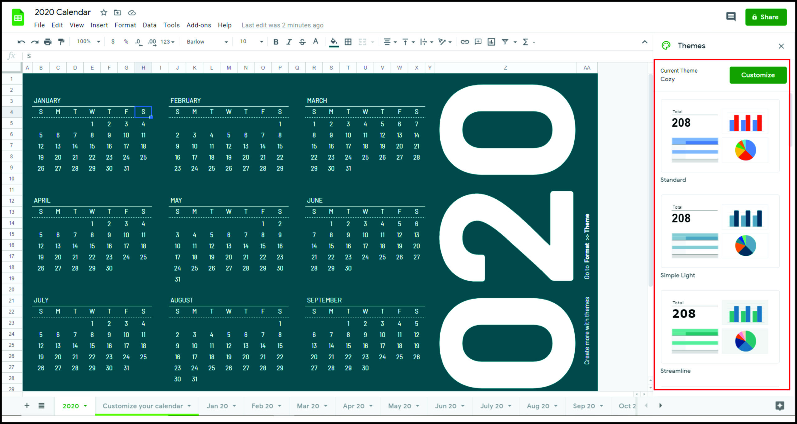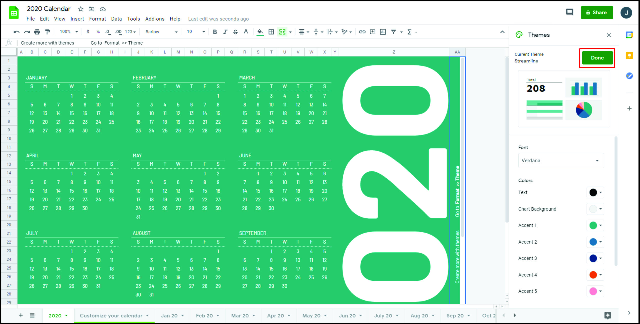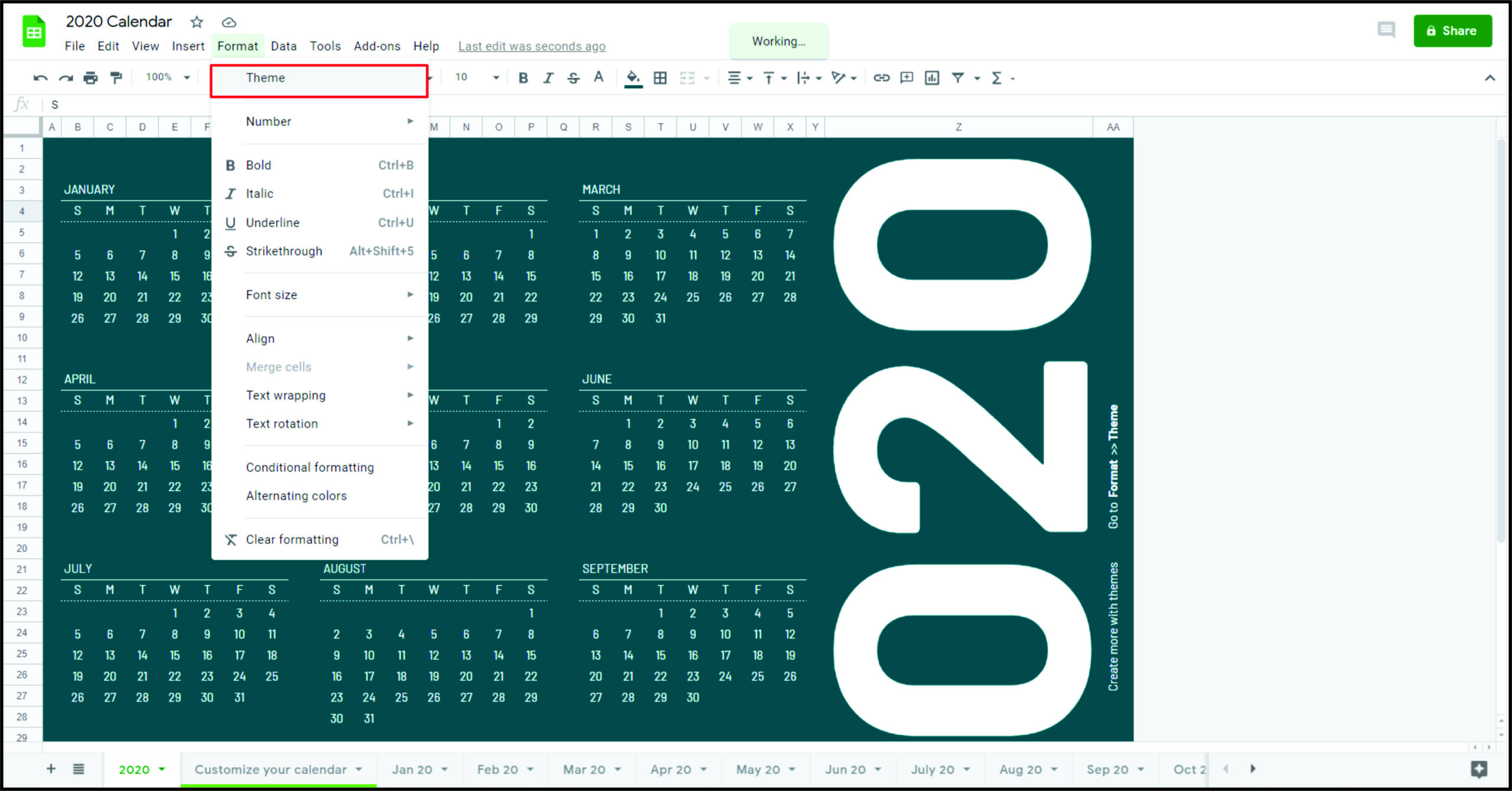- 在 Google 表格中创建自定义主题。