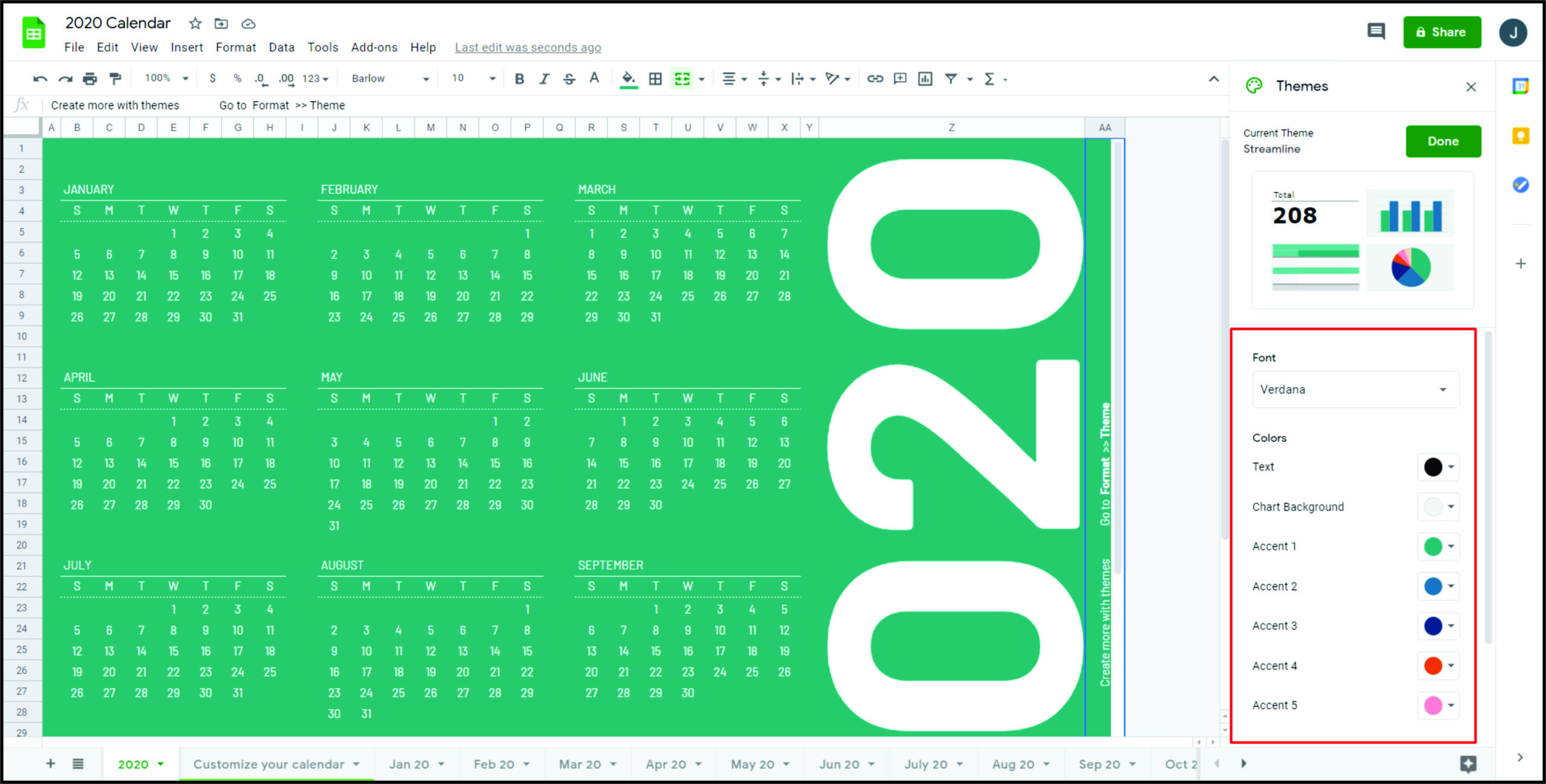 - 您可以更改字体、颜色、样式和图表设置等所有内容。在这一步中,您可以决定以后所有工作表要使用哪种字体。