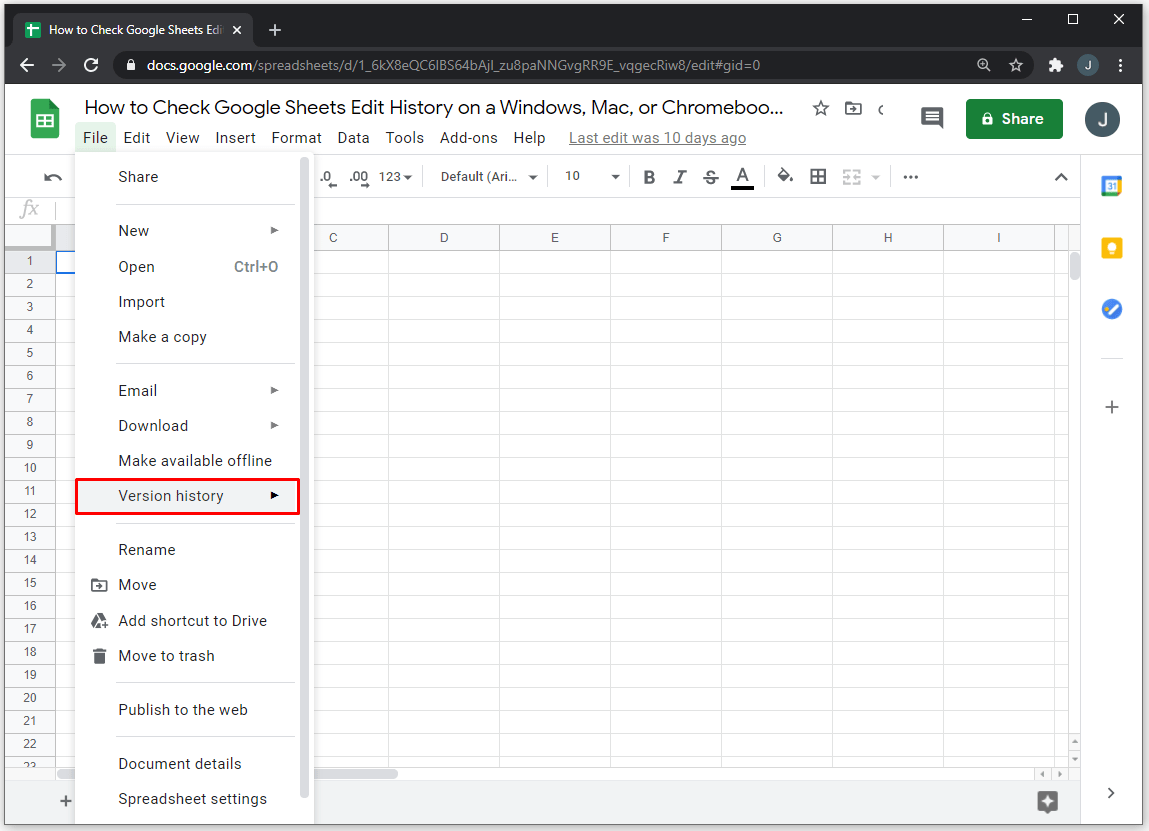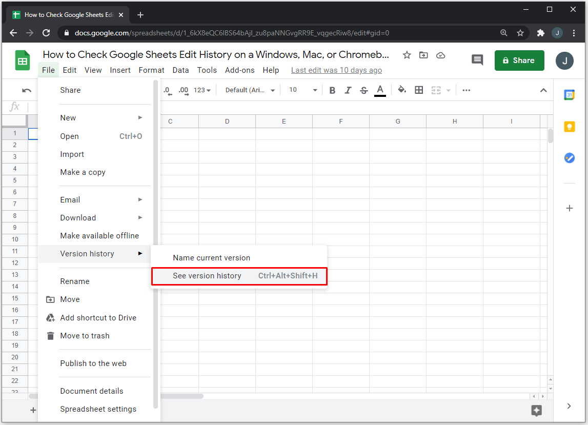 - 如何查看 Google Windows、Mac 或 Chromebook PC 上的表格编辑历史记录