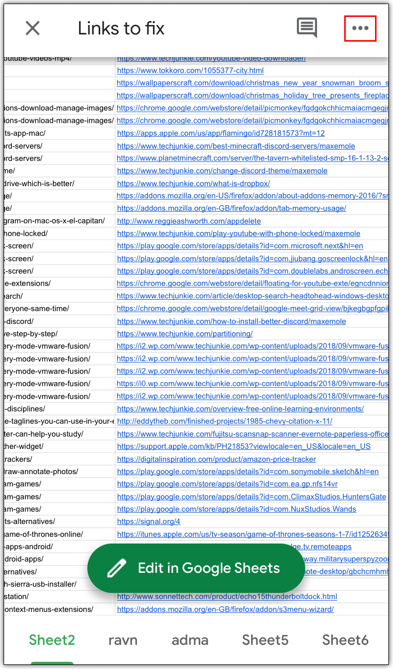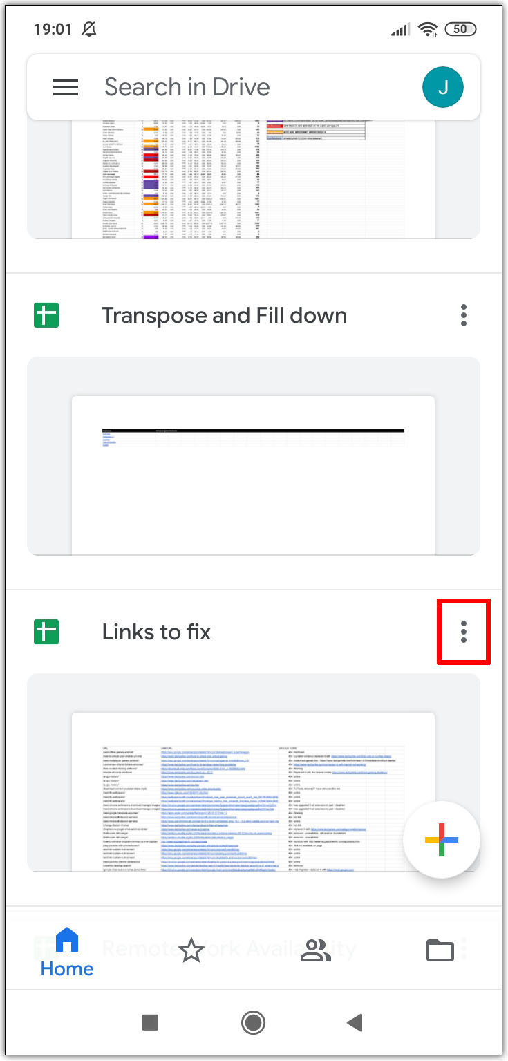 - 点按您要查看的 Google 表格旁边的三个小点。