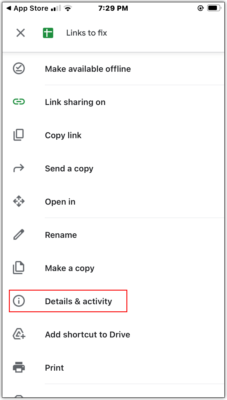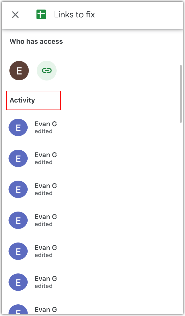 与使用 Windows 或 Mac 计算机一样,您会看到(Google 表格的)最新版本列表,带有时间戳并可供查看。