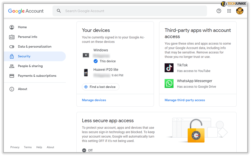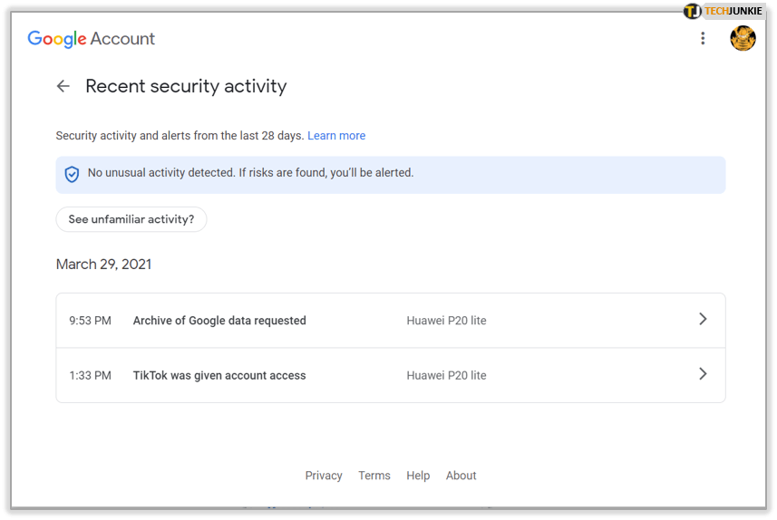 最后,访问您的帐户安全页面并查找任何安全警报。 Google 有自己的方法来告诉您是否有人登录了您的帐户。