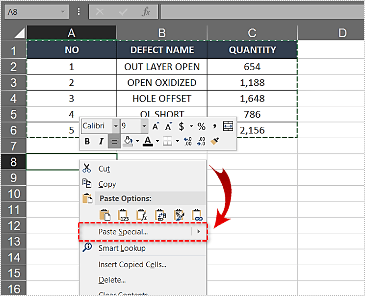 - 将鼠标悬停在“特殊粘贴”选项上。