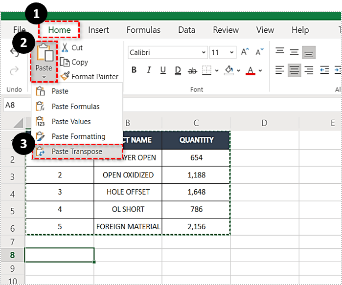 多亏了 Microsoft Excel 中的“特殊粘贴”功能,将行转换为列,反之亦然是一项轻松的任务。此功能称为“转置”,您可以按照以下步骤执行此功能: