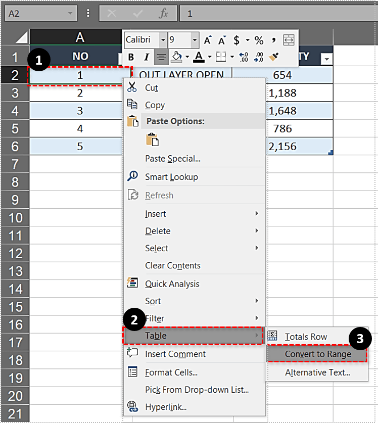 另一个选项是右键单击表格,转到“表格”菜单并选择“转换为范围”。