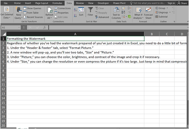 在 Excel 中打开新电子表格。首次打开时,请按启用编辑按钮。 Word 文档中的所有原始内容都将存在,但您可能需要调整工作表的格式和布局。