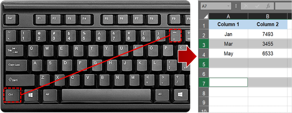 按住 Ctrl 键,然后按 – 键。这将删除选定的第三、第五和第七行。您也可以右键单击鼠标并从出现的上下文菜单中选择“删除”。无论哪种方式,您的表格都会剩下三行。