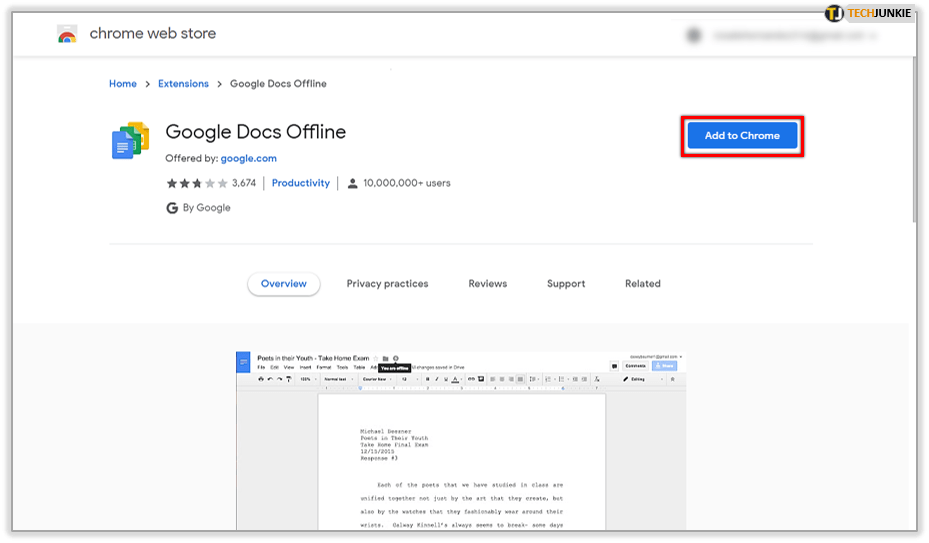 - 去谷歌文档离线下载相应的扩展您的 Chrome 浏览器。