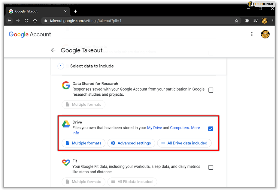 打开Takeout页面时,如果想加快速度,只能选择Google Drive处理并跳过下载不必要的文件。选择 Google Drive 后,选择要下载的格式-PDF、xlsx 或 ods。您的所有电子表格都将作为 zip 文件下载。