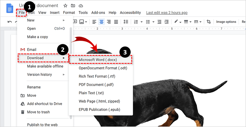 与上面的方法类似,您也可以将您的 Google Doc 导出为 Office Word 文件,一个.docx。从这里您只需右键单击并保存图像。如果您有 Word 或其他文字处理应用程序的副本,您可以做很多相同的事情。