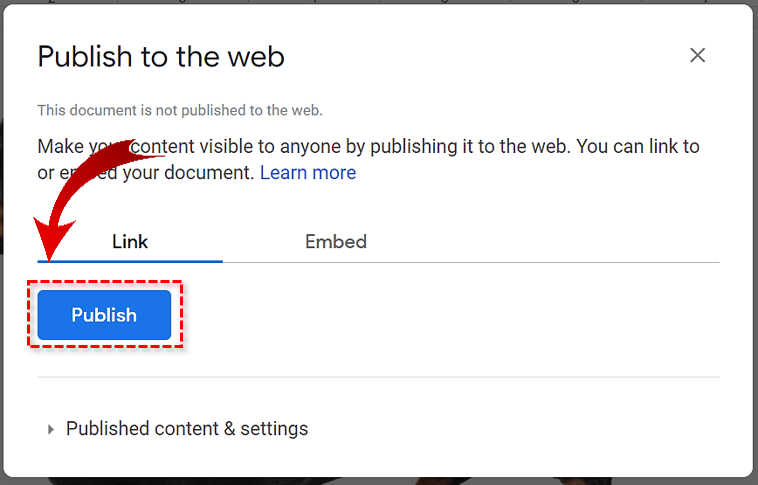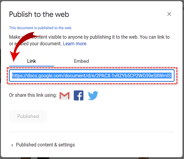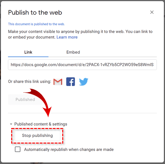 如果除了获取图像之外,您实际上并不希望发布文档,请在 Google 文档中返回该文档,再次选择文件并发布到网络,然后选择停止发布。这将使它再次完全私有。