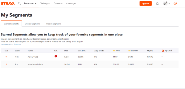 据我所知,您只能编辑或删除您创建的片段。如果您的路线包含其他人创建的路段,则您无法编辑这些路段。您可以在应用程序或网站的“我的细分”部分中找到您创建的细分。由于我倾向于在网络上进行任何修改,因此这些说明将使用它而不是应用程序。