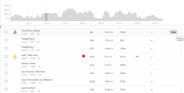 隐藏段的另一件事是隐藏它们也会抑制它们的成就或 PR。 这是有道理的,因为无论如何您都将其隐藏,但如果您计算 PR,则需要取消隐藏该单个段。