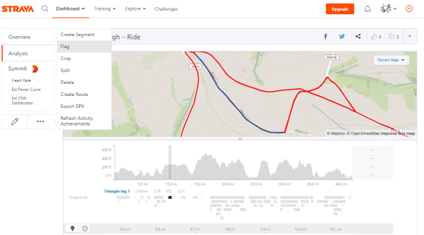 如果您确实遇到真正危险的路段或看到危险路段,例如穿过商场停车场或穿过当地购物中心的路段,您可以将其标记并让它被 Strava 删除了。不能保证它会一直被标记,但至少会在一段时间内消除鲁莽的诱惑。