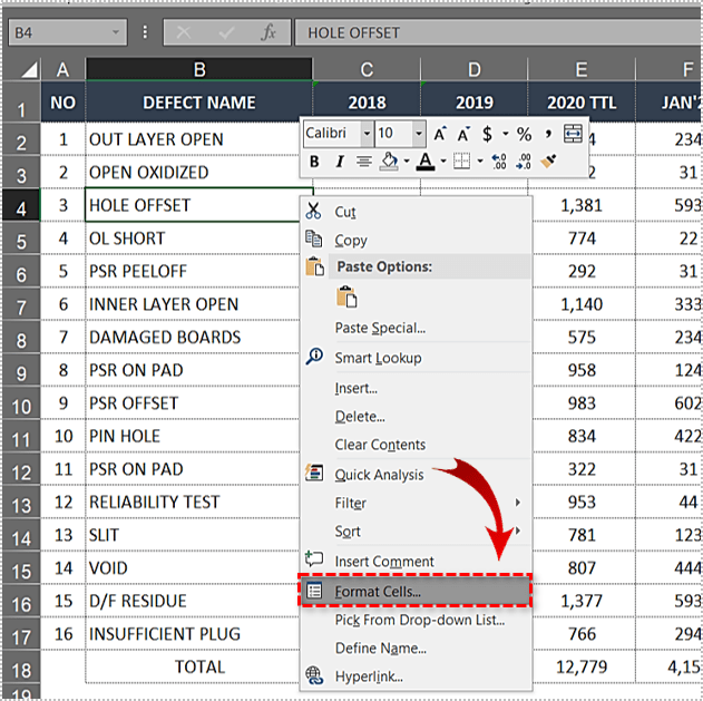 - 右键单击其中一个选定单元格并选择“设置单元格格式...”