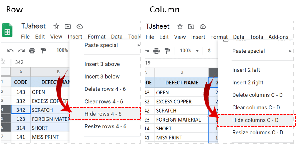 如果您想隐藏 Google 表格中的一行或一列,只需按照以下步骤操作: