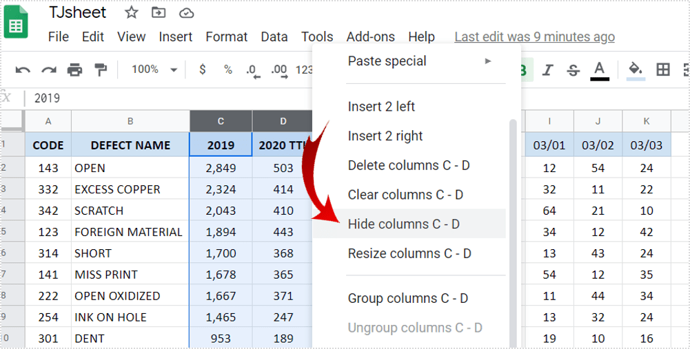 但是,有时当您工作时,可能是您不需要查看的 Google 表格中的列。干净的工作区就是舒适的工作区,不是吗?