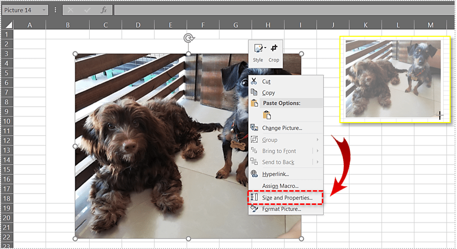 - 加载图片后,您可以调整高度和宽度以适合您之前调整的单元格区域。