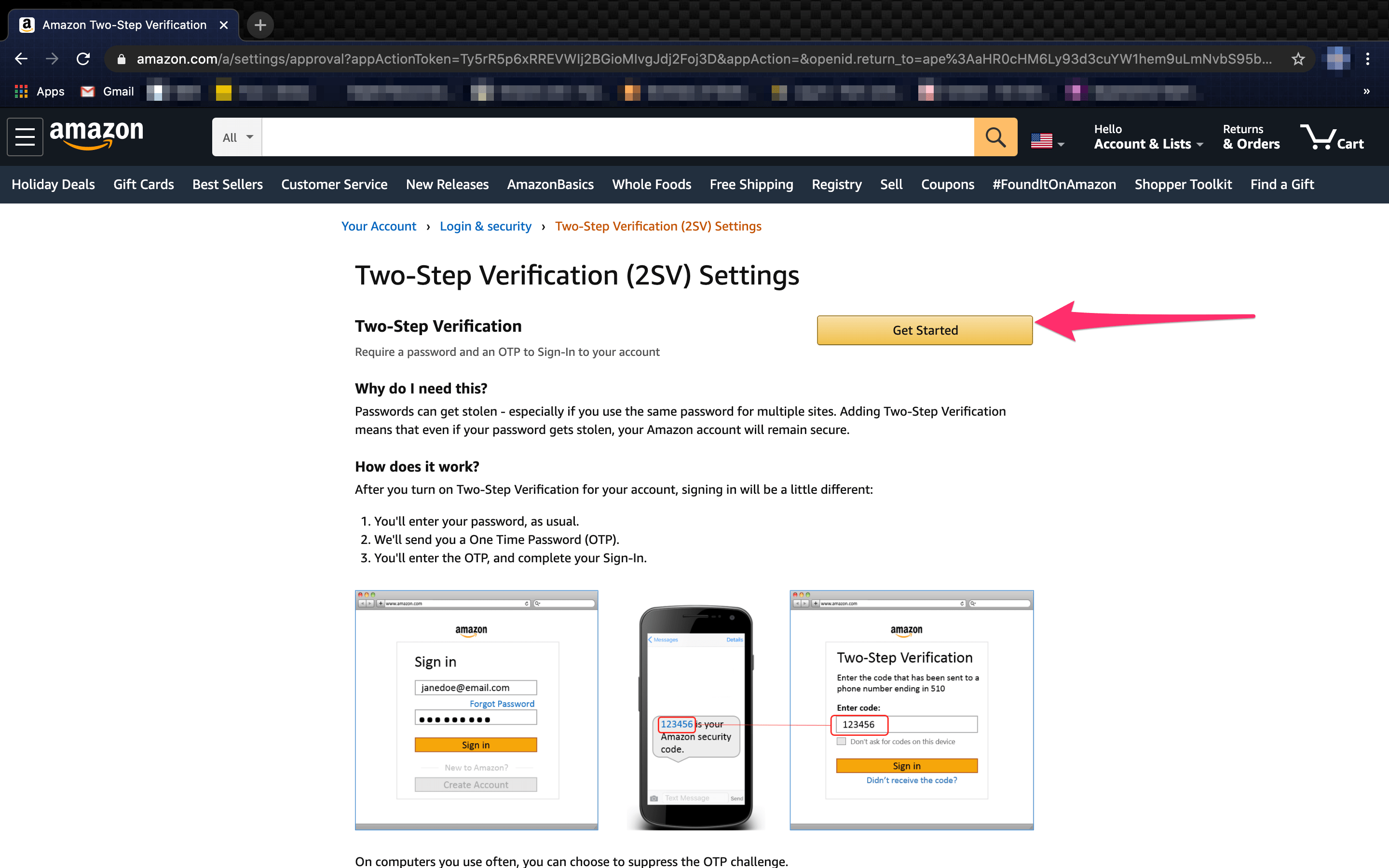 双重身份验证 (2FA) 被设计为第二道保护墙,它通过创建一个额外的密码来进入您的帐户。密码很容易被盗,但添加这一额外的防御层将有助于您的亚马逊帐户保持安全。
