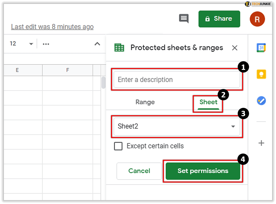 - 通过选择数据然后选择受保护的工作表和范围来保护工作表 2。