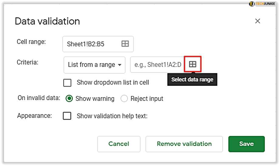 您的 Google 表格可能是一个不断发展的文档,因此使用此选项可以轻松更新您的下拉列表。