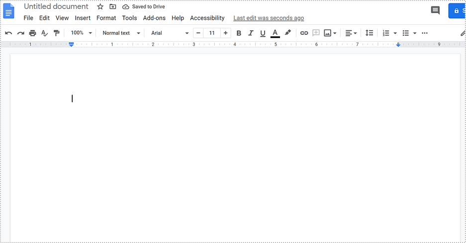 - 在 Google Drive 中打开新的 Google Doc 或 Google Docs 直接。