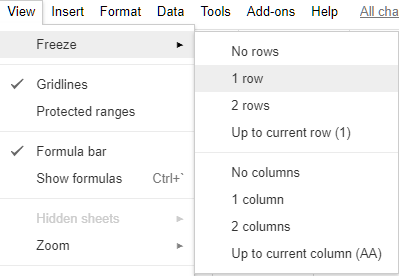 另一种冻结 Google 表格中列标题的方法