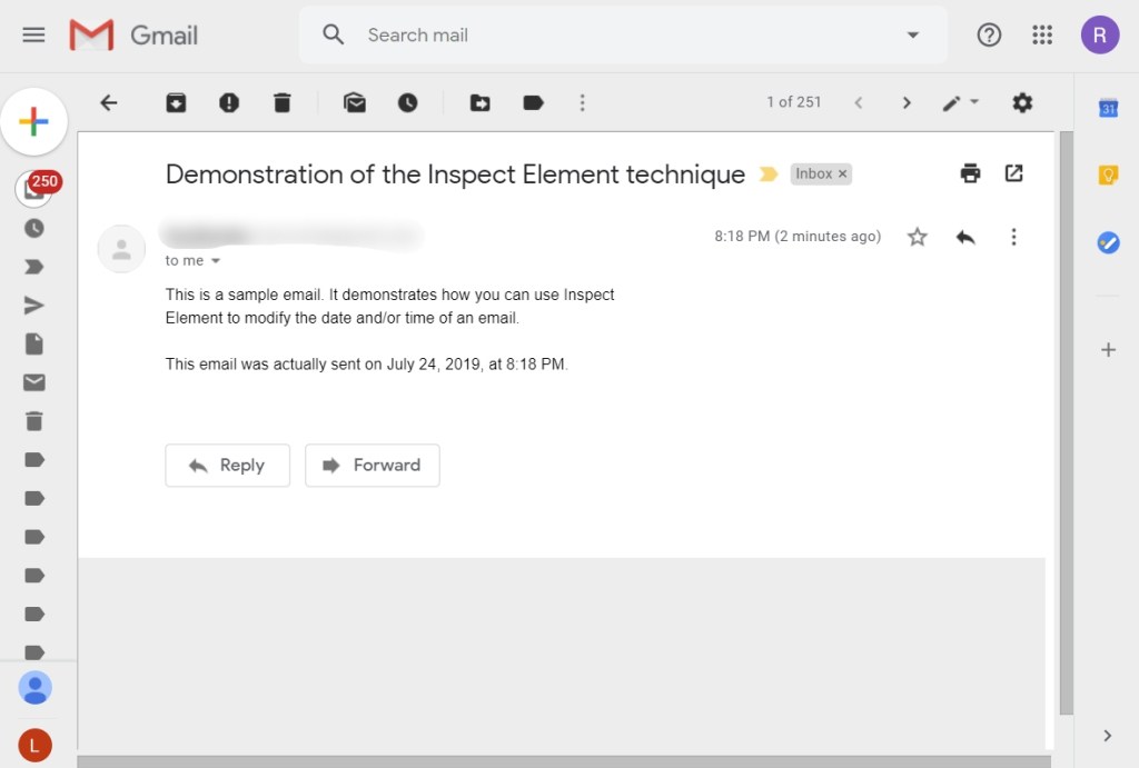 如果您使用 Gmail 或其他webmail 客户端,然后使用 Google Chrome 强大的“检查元素”功能临时修改在屏幕上显示电子邮件的 HTML 代码,然后对显示的电子邮件进行截图以“证明”该电子邮件具有特定日期。